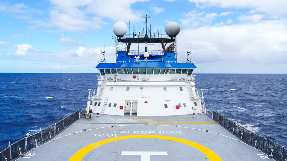 Helipuerto y sector de proa del buque Falkor (too). Créditos: Schmidt Ocean Institute.