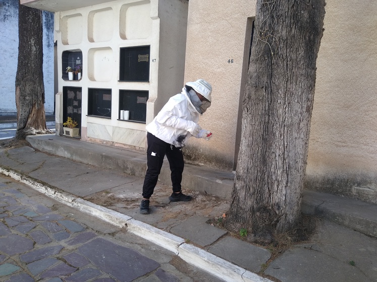 En ese contexto, la ciudad aparece como un espacio clave para la conservación de especies nativas. “Las abejas nativas sin aguijón nos muestran que incluso en ambientes altamente modificados, como las ciudades, la biodiversidad encuentra formas de persistir”, señala Castro. Colonias registradas en paredes de viviendas, postes de luz, medidores de agua e incluso nichos de cementerios dan cuenta de ello. “Su presencia indica que las ciudades brindan refugios y recursos vegetales que pueden sostener a estas poblaciones”.